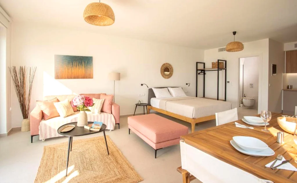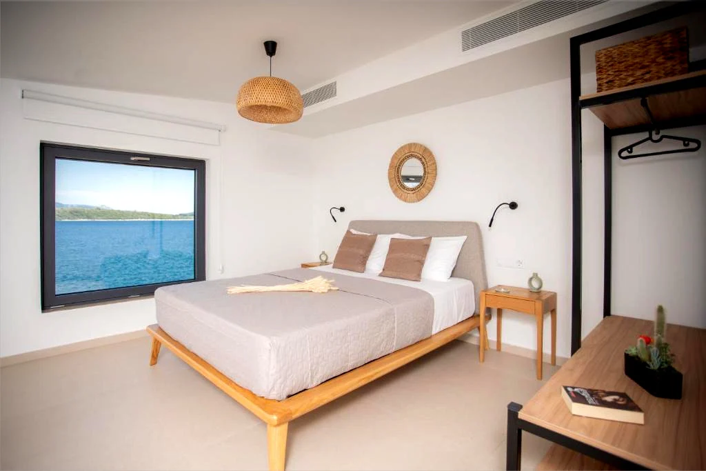 Every bed offers a stunning view of the sea — wake up to the beauty of the Ionian horizon.